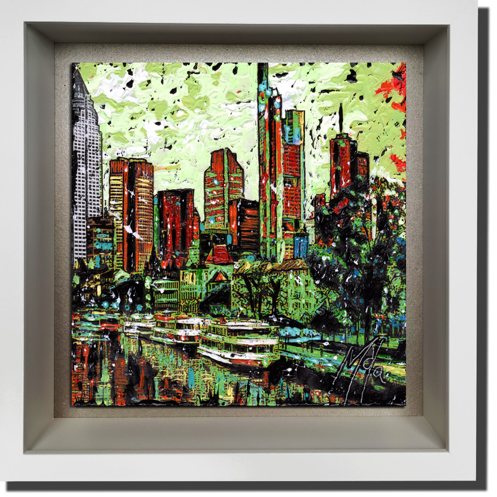 Mix&Match sind gerahmte Originale, die mit einer Mixed Media Spachteltechnik mit Acryl gearbeitet sind.